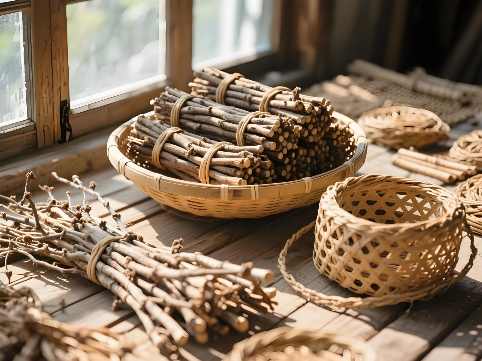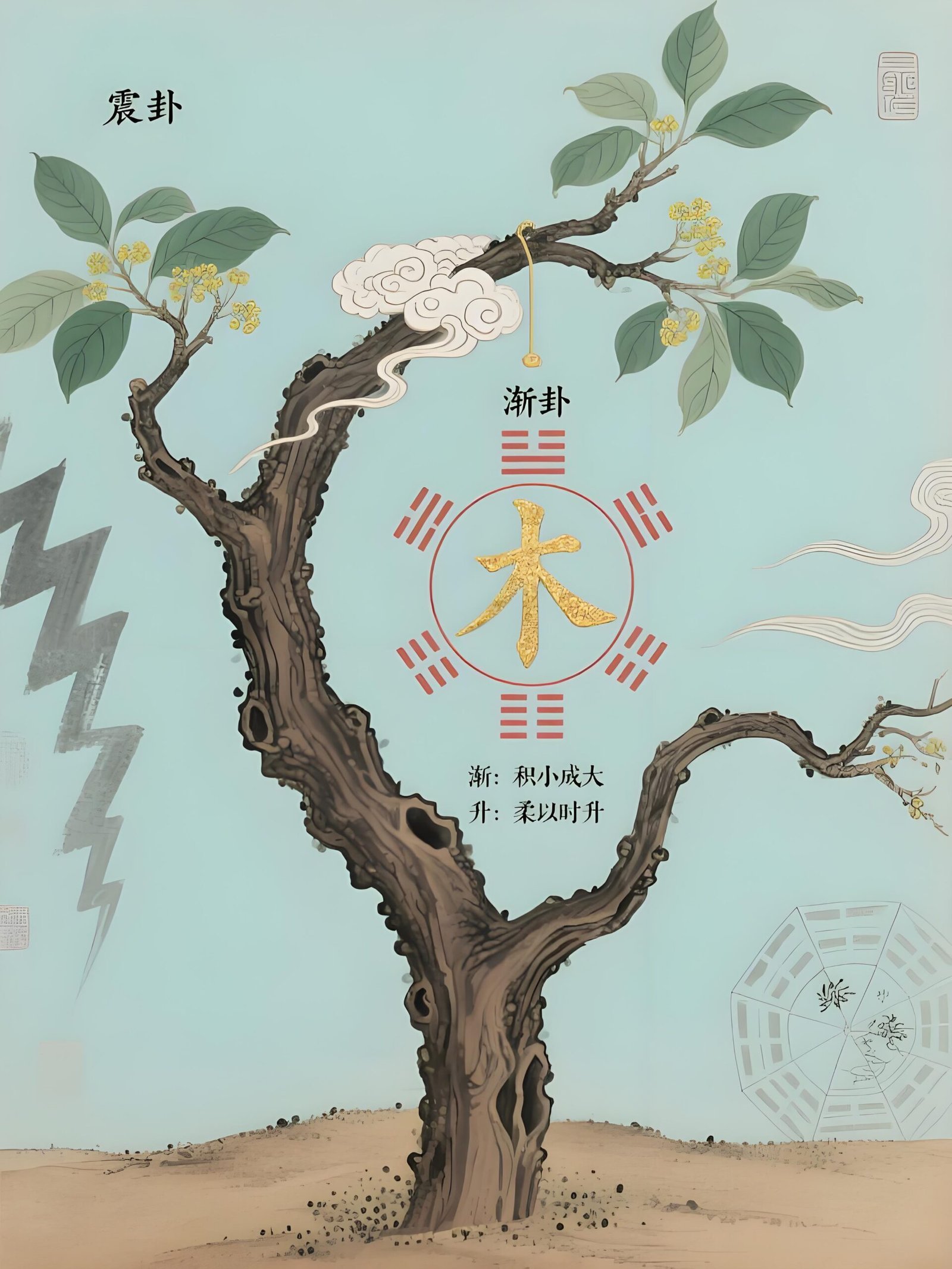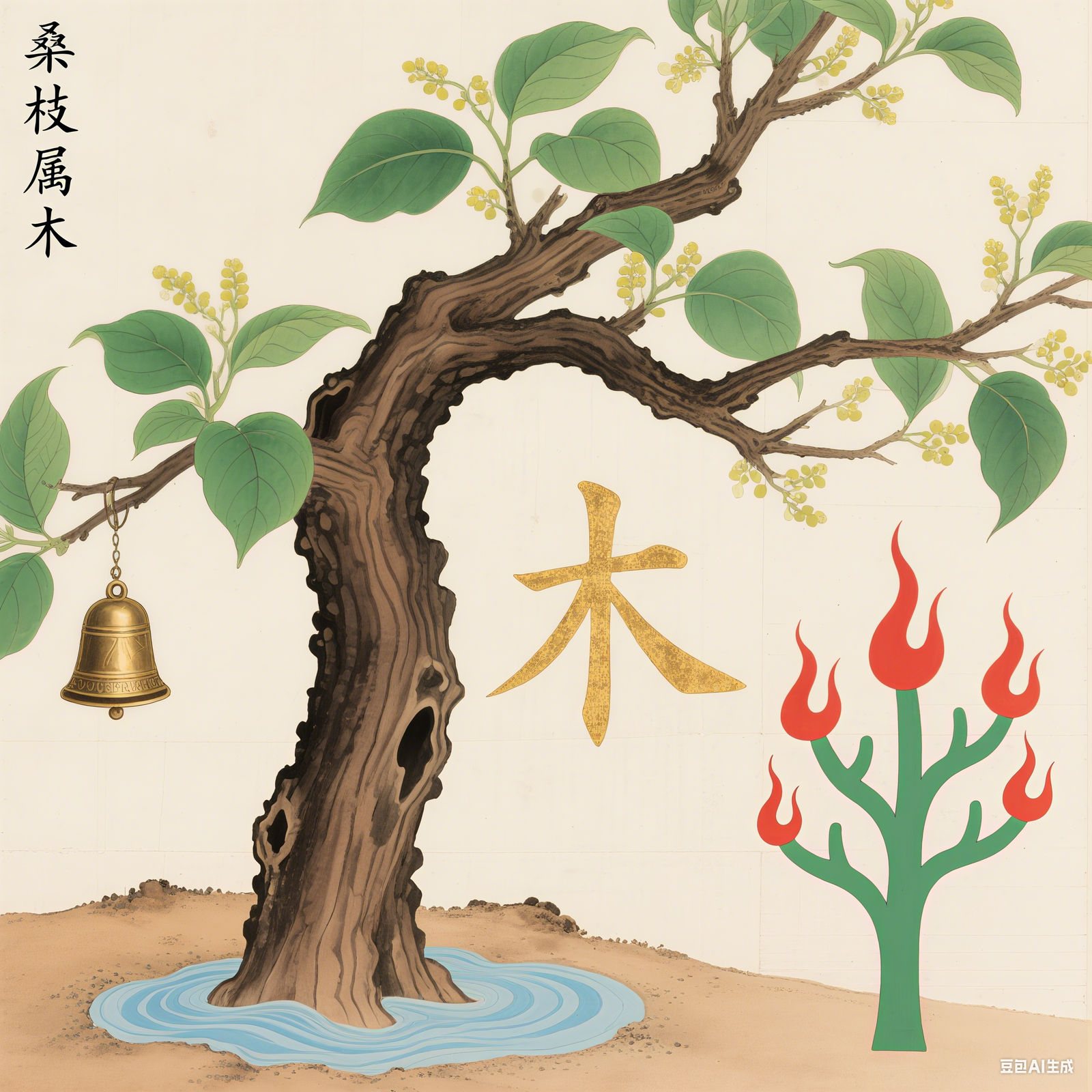 The flexibility of Ramulus Mori matches the Xun Gua (☴) in I Ching, being soft yet unbreakable. Its sprouting in spring corresponds to the emergence of yang lines in Zhen Gua. Its upward extension echoes the vitality of Zhen Gua, making it a dynamic carrier of life.