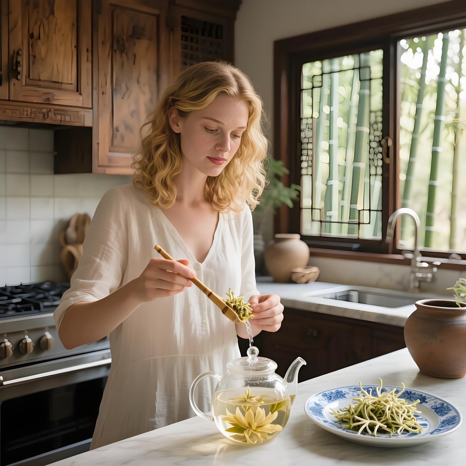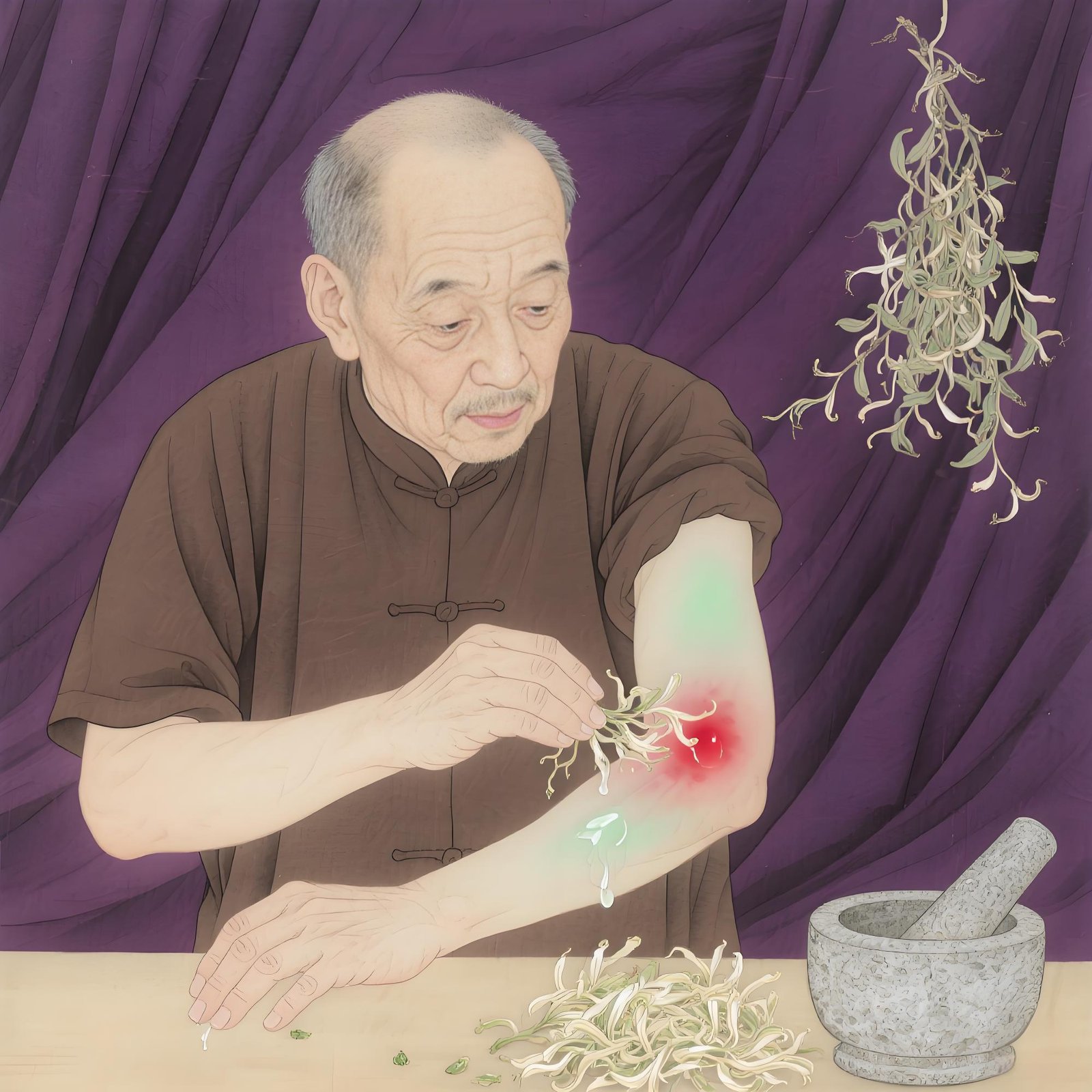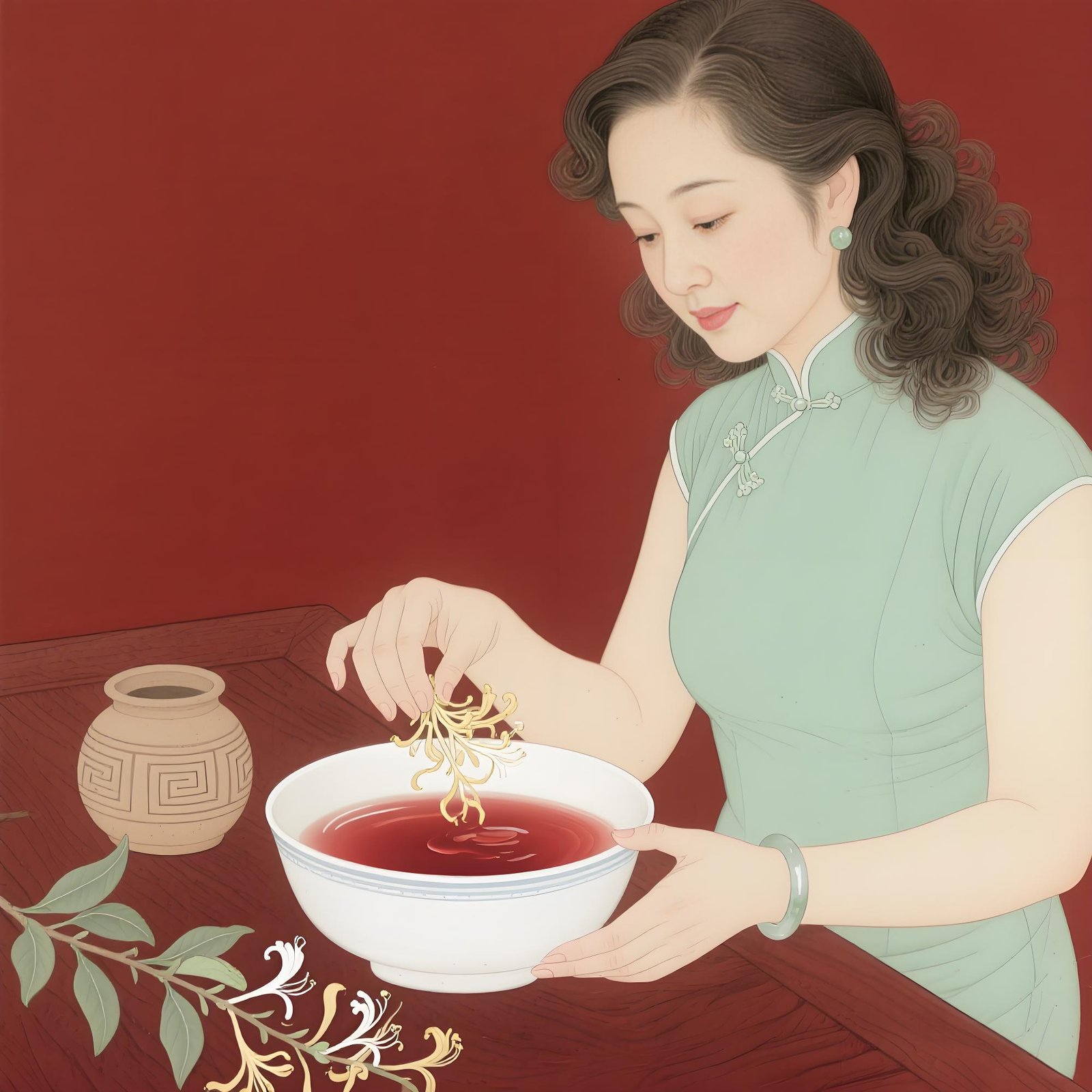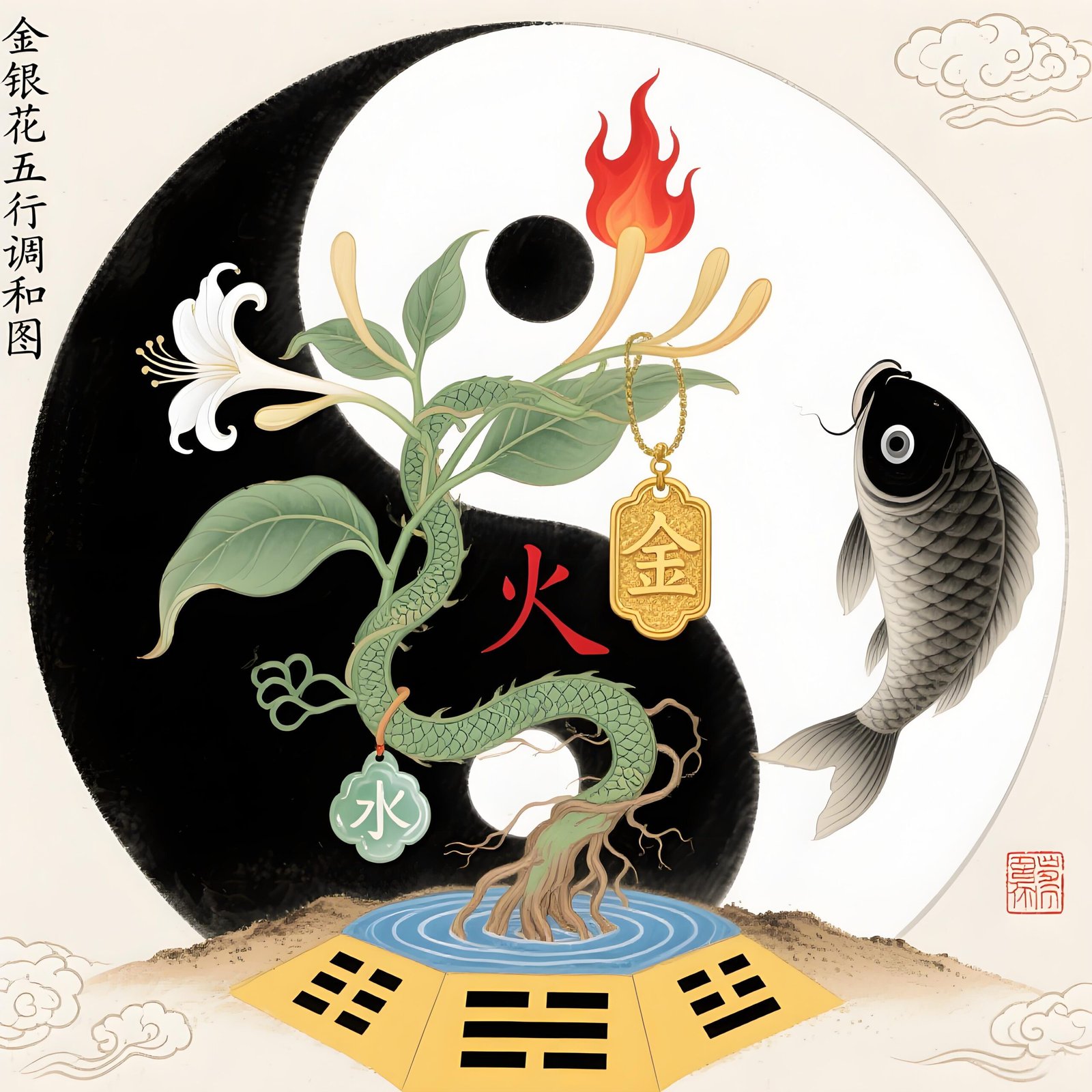 Honeysuckle is cold in nature and belongs to Yin. In the Five Elements, it is mainly associated with Metal and also related to Earth. It can clear Metal (relieve lung heat), tonify Earth (protect the spleen and stomach), and restrain Fire (detoxify). By virtue of the principle of balancing Yin-Yang and the Five Elements, it treats heat syndromes and maintains the balance of the human body.