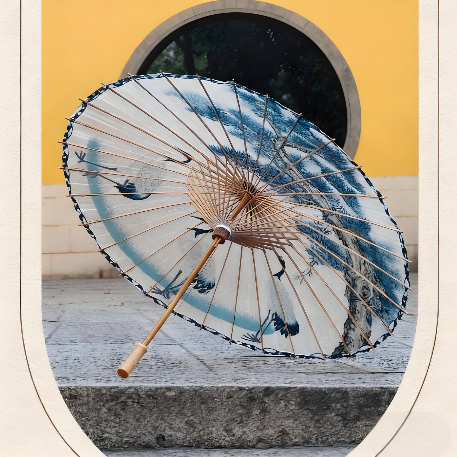 Manufacturing Process: Semi-penetrating (a traditional structural craft for oil-paper umbrellas, referring to the way umbrella ribs are connected to the umbrella surface)