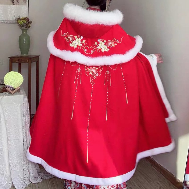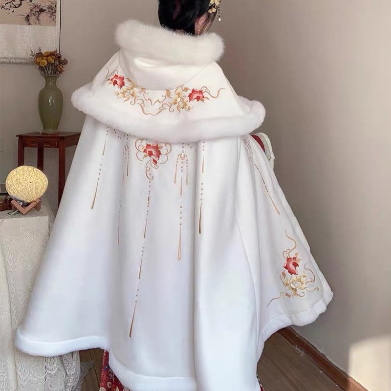 Cloak with added velvet, thickened cloak, big fur collar, heavy embroidery, Chinese style, long Hanfu, ancient style, warm shawl, winter
