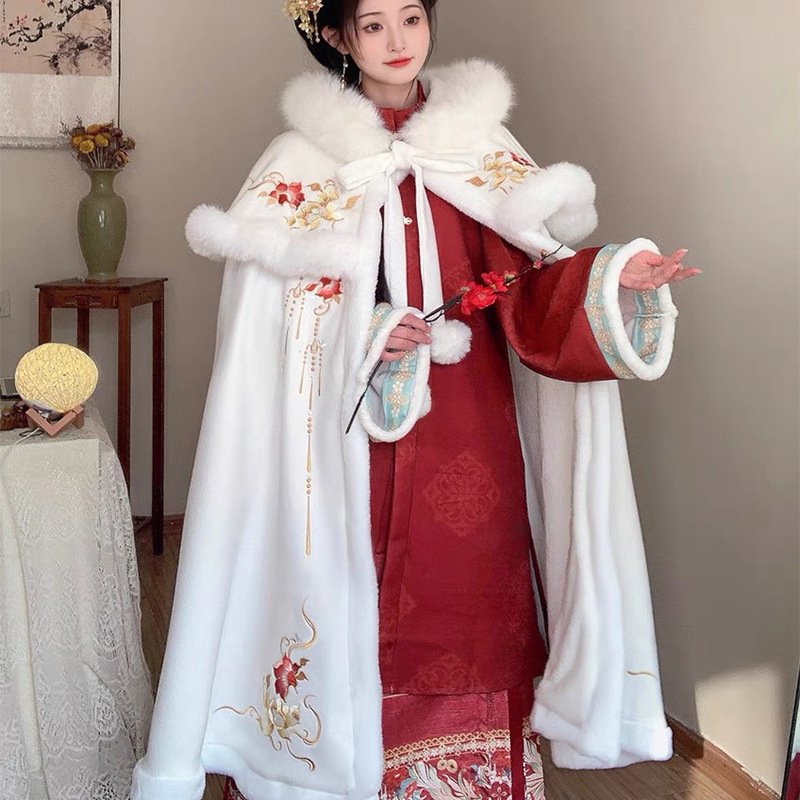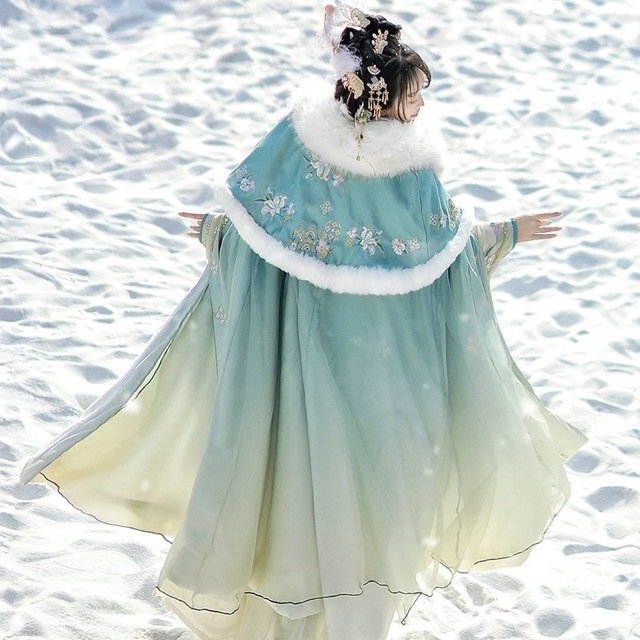 3. The fleece fabric resists cold, and the long design keeps the waist warm. Suitable for daily commuting, ancient-style gatherings, winter photography and other scenarios. It is both a warm shawl and a highlight of Chinese-style looks, balancing practicality and appearance.